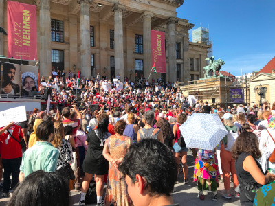 Gestern zum Weltkindertag protestierten Berlinerinnen und Berliner unter klassischer Musik gegen den Genozid an der palästinensischen Bevölkerung in Gaza. Avaaz schreibt dazu als Veranstalter: